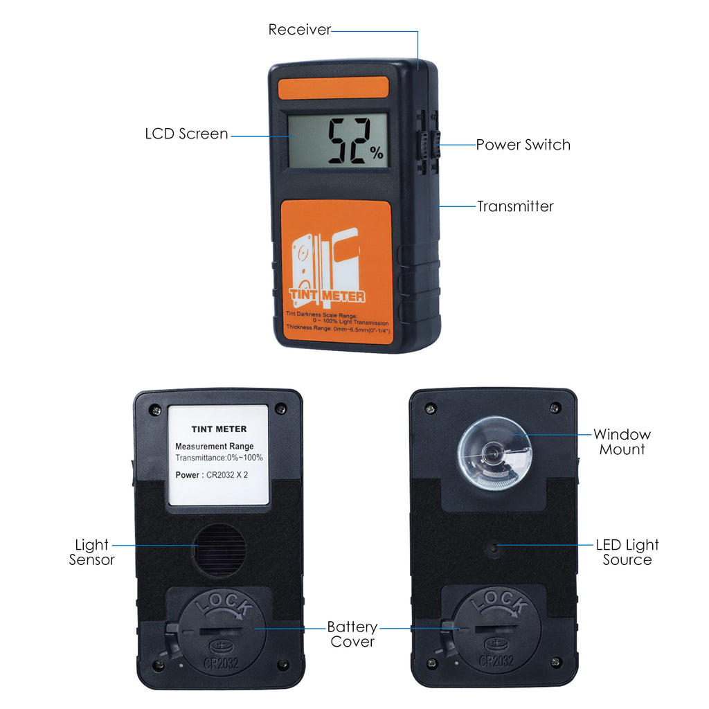 TK214PLUS Portable Window Tint Meter 100% Visual Light Transmission (VLT) Continuous Measurement up to 4000 Handheld Device for Car Window Vehicle Curtains